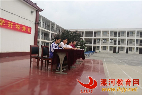 在热烈而庄重的氛围中,全校师生共同起立,高唱国歌,正式拉开大会序幕。大会开始,校长李志刚同志作了新学年致词。他在致词中首先对七年级新生表示了热烈的欢迎,对八年级学生提出了中肯的建议,对九年级学生给予了亲切的鼓励。之后他对全体师生提出了建设性的要求,他指出广大教生要在新的学年立足新的起点,敢于拼搏,勇于挑战,力争在新学年取得更大的突破。