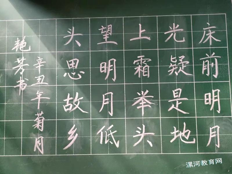 粉笔字,汉字之美在形体,在风骨,在精髓。一笔一画,一撇一捺,老师们认真书写,字体或隽永飘逸,或清秀雅致,或端正整洁…… 这一横一竖,一撇一捺,充分展现了青年教师过硬的基本功。正所谓:横平竖直皆风骨,捺撇飞扬是血脉。