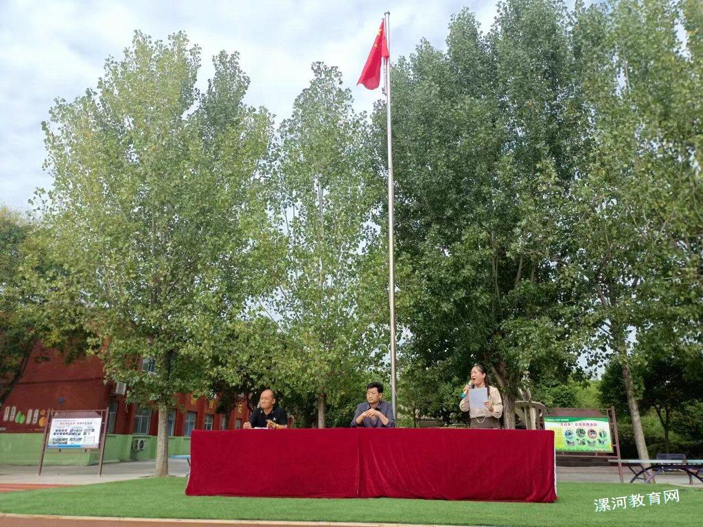 全体老师行注目礼,少先队员敬队礼;升国旗、奏国歌。随着国歌响起,五星红旗迎风飘扬,开学典礼就此拉开序幕。