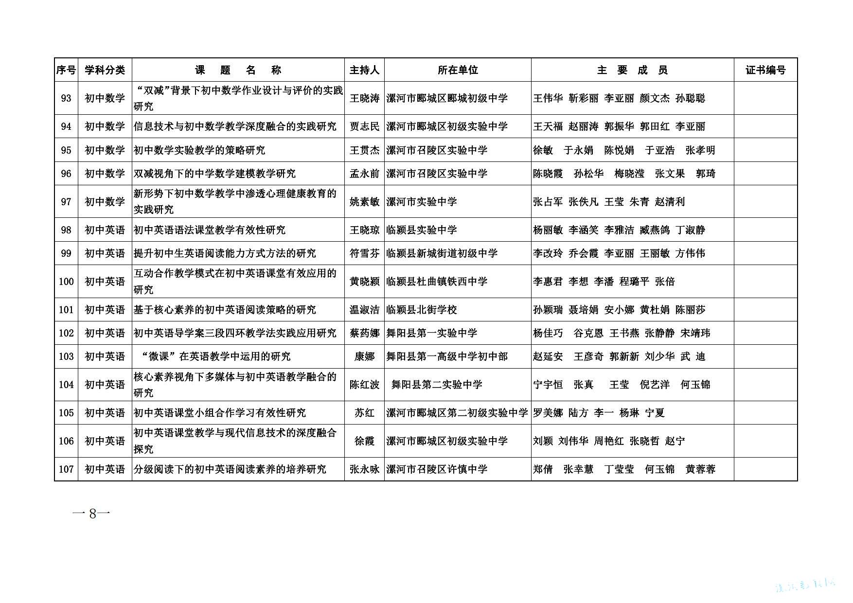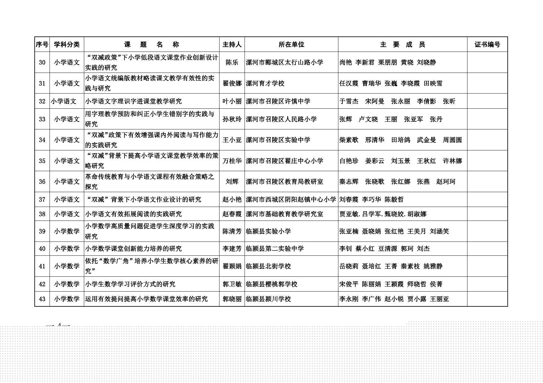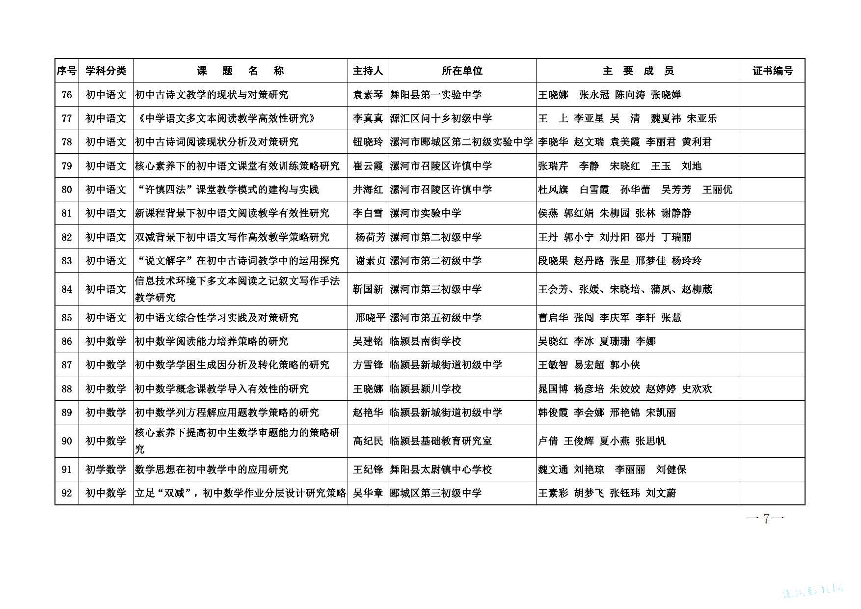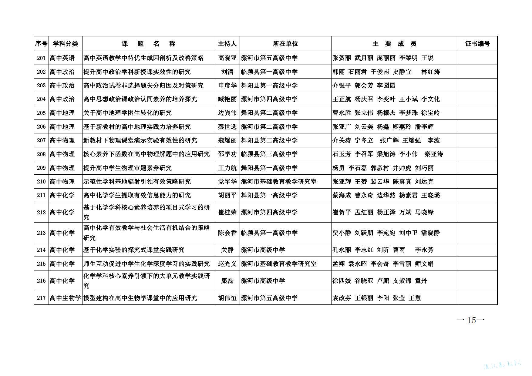 依据《漯河市教育局关于公布2021年度漯河市基础教育教学研究项目立项课题的通知》(漯教基研〔2022〕3号)和《漯河市教育局关于组织2022年度基础教育教学研究项目结项申报工作的通知》的要求,漯河市教育局组织基础教育教学研究项目评审专家对结项申报材料进行了严格核查与鉴定,共231项课题验收合格,批准结项,现将鉴定结果予以公示。