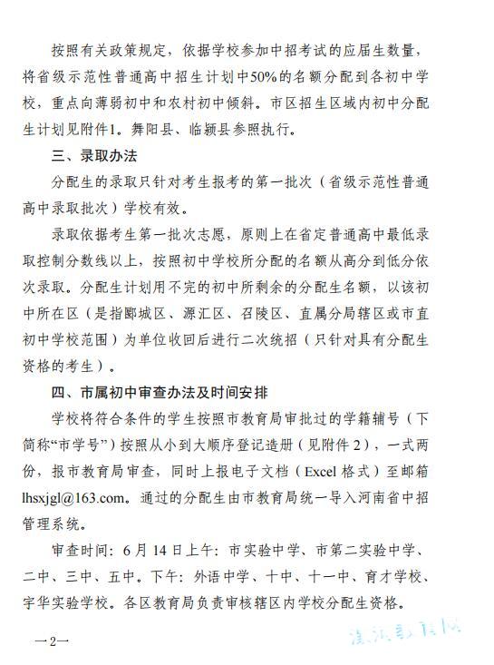 漯河市教育局关于做好2023年普通高中分配生工作的通知