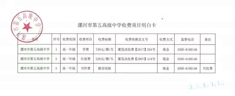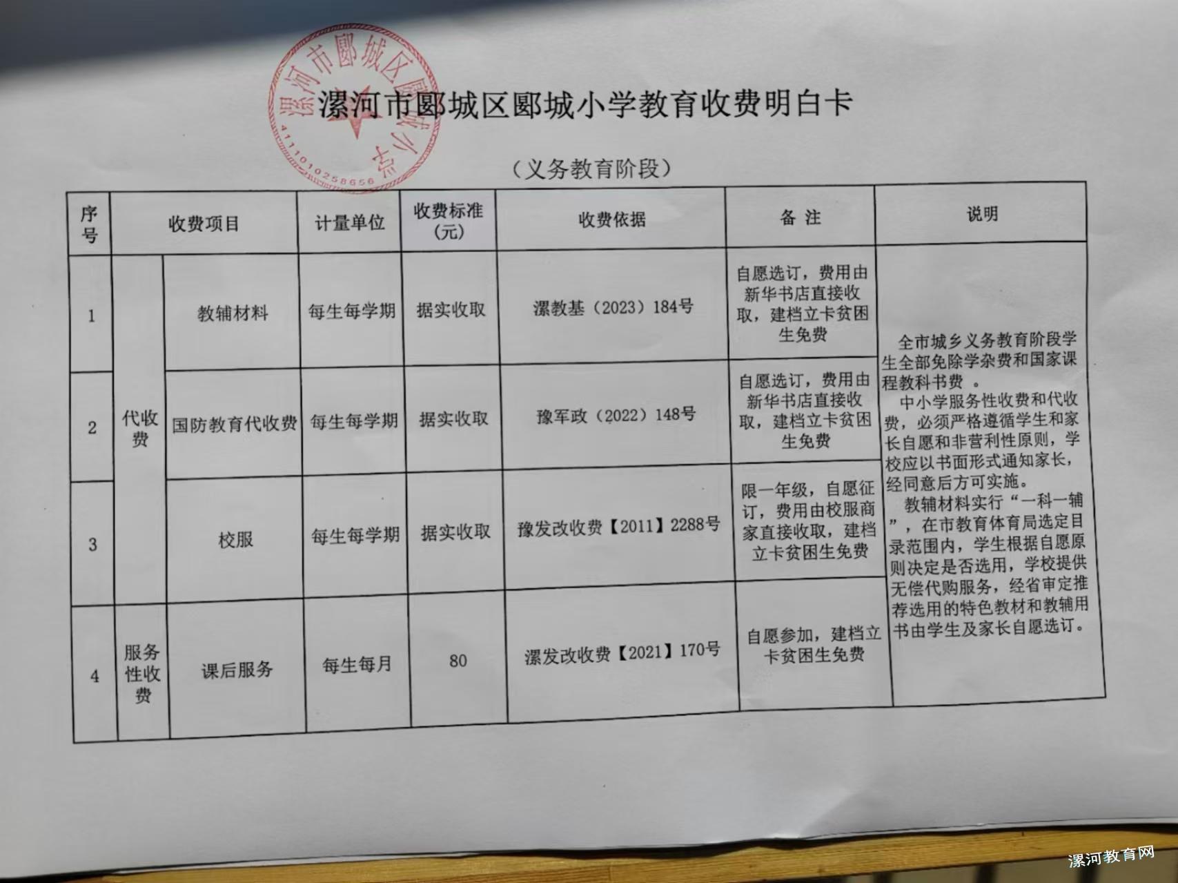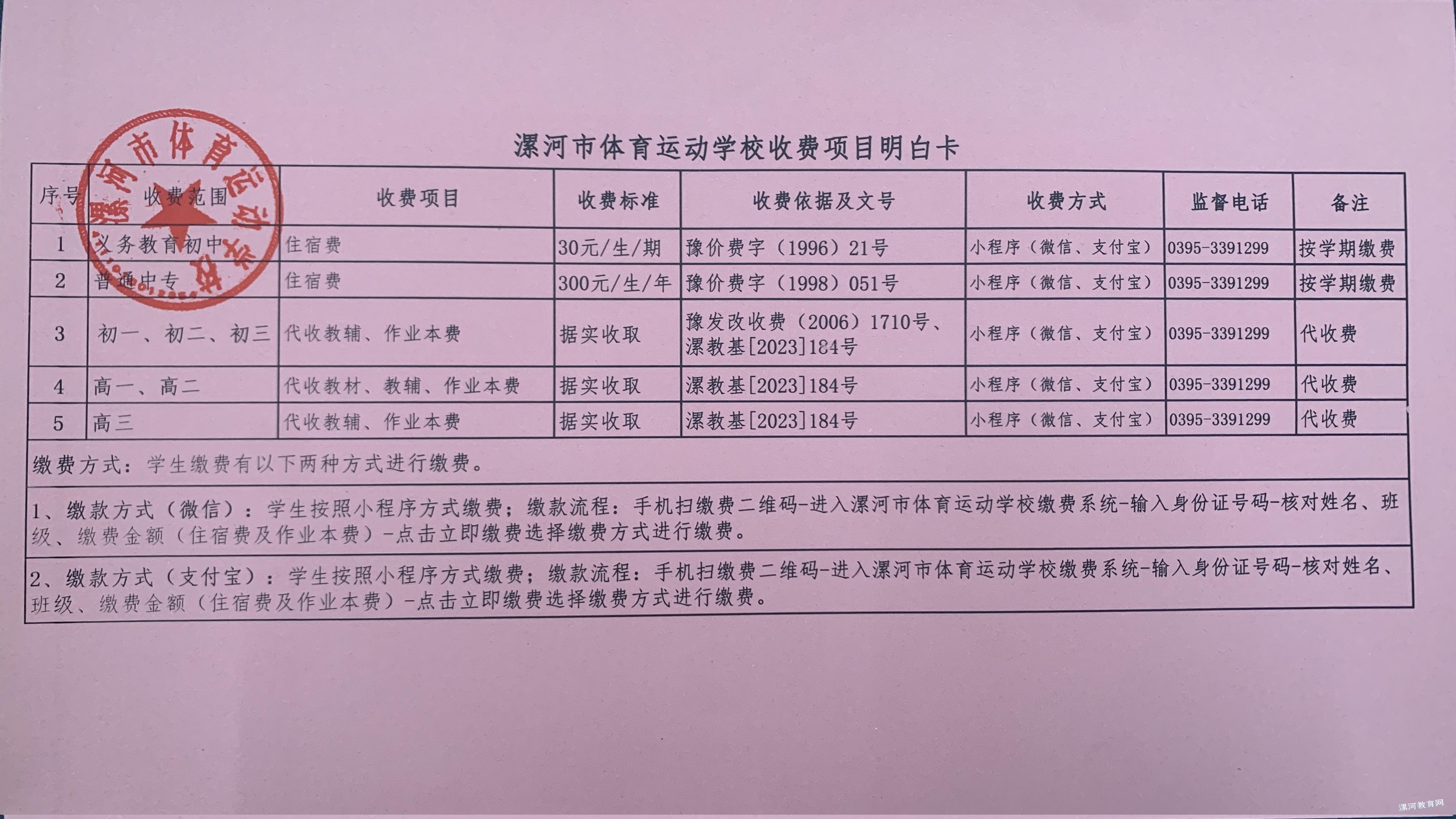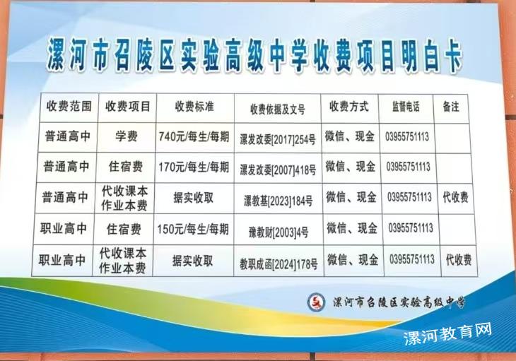 新学期,漯河市各级各类学校陆续公示学校《收费明白卡》