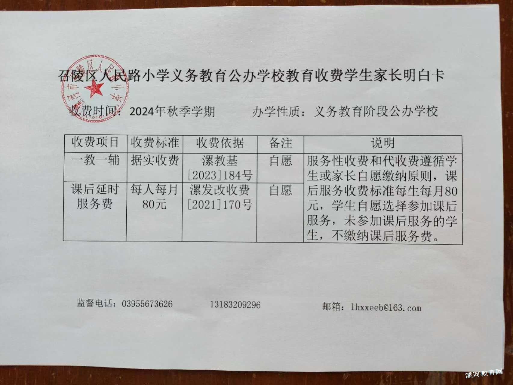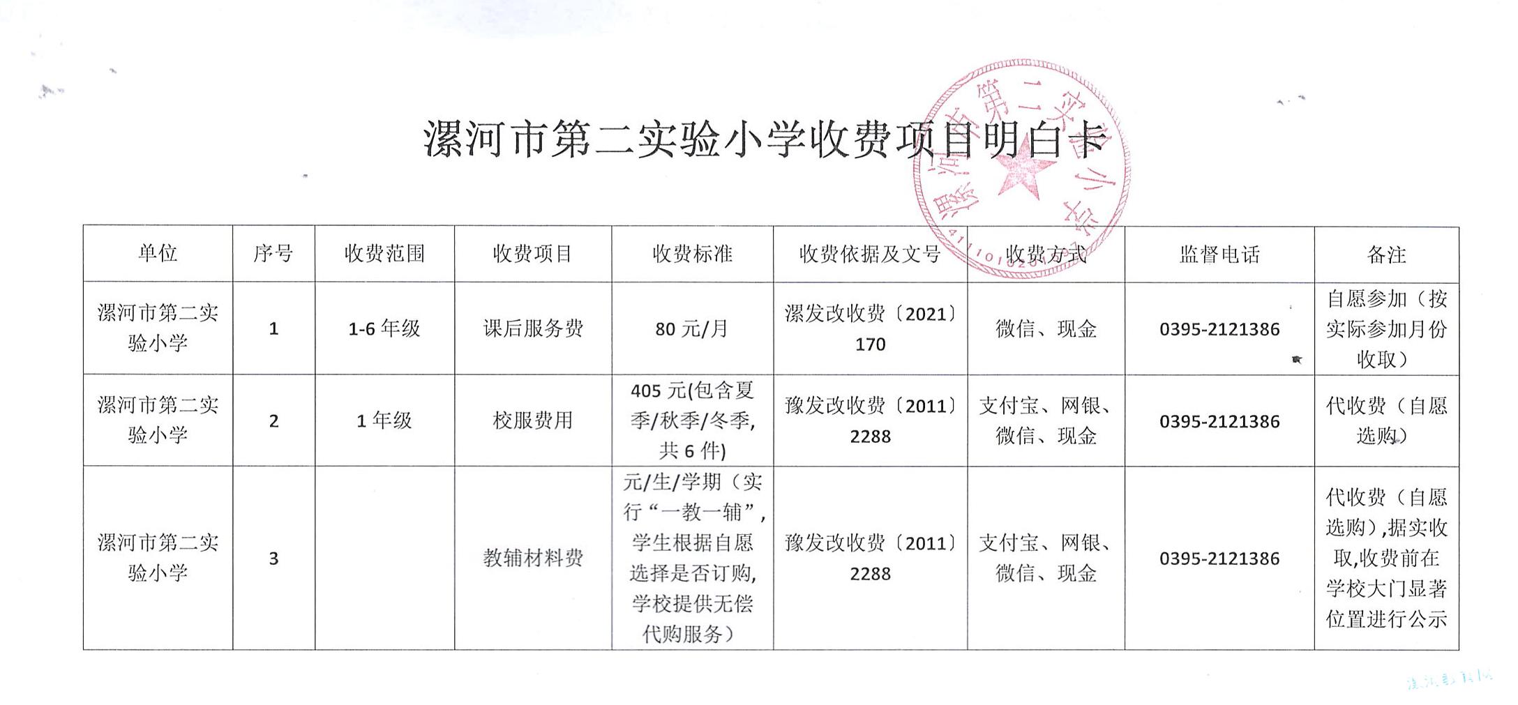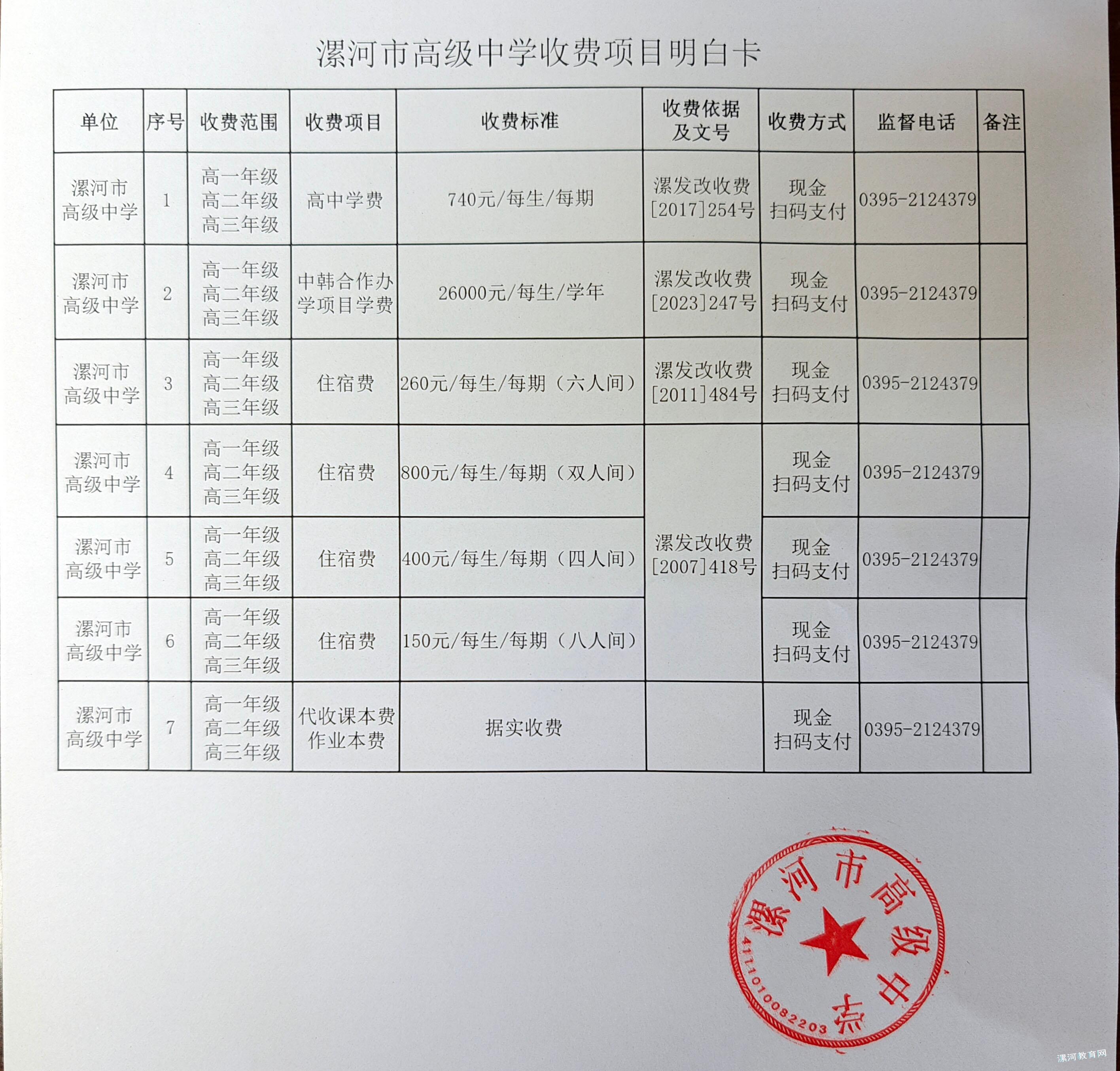 新学期,漯河市各级各类学校陆续公示学校《收费明白卡》