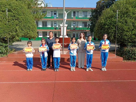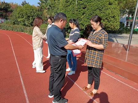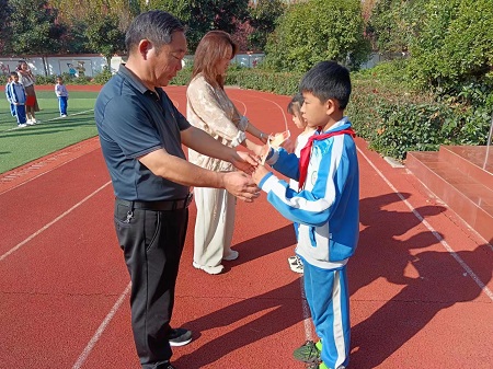 校领导为获奖学生、班级、辅导教师颁发奖状