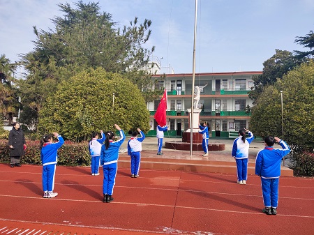 大课间,清明李小学全体师生齐聚操场进行开学典礼暨升旗仪式。伴随着雄壮的国歌声,鲜艳的五星红旗徐徐上升,全体师生庄严肃穆,爱国热情激荡在大家的心中。来自五(1)中队的旗手们,迎着朝阳,护卫着国旗,雄壮激昂的国歌奏起,五星红旗冉冉升起,孩子们以最美的队礼向国旗致敬,表达对祖国的热爱,用最挺拔的身姿自信地迎接新学期。