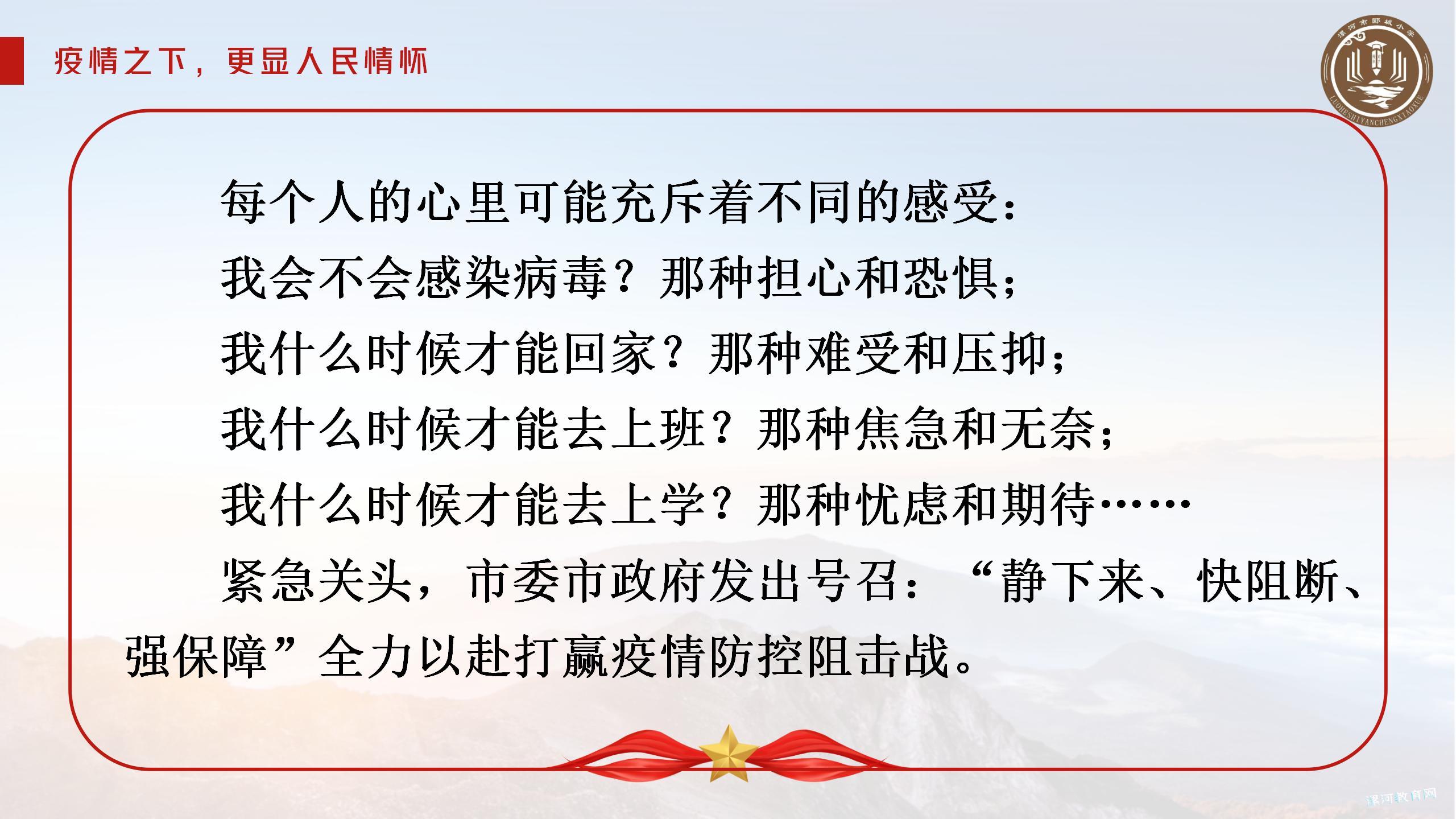 紧急关头,市委市政府发出号召:“静下来、快阻断、强保障”全力以赴打赢疫情防控阻击战。