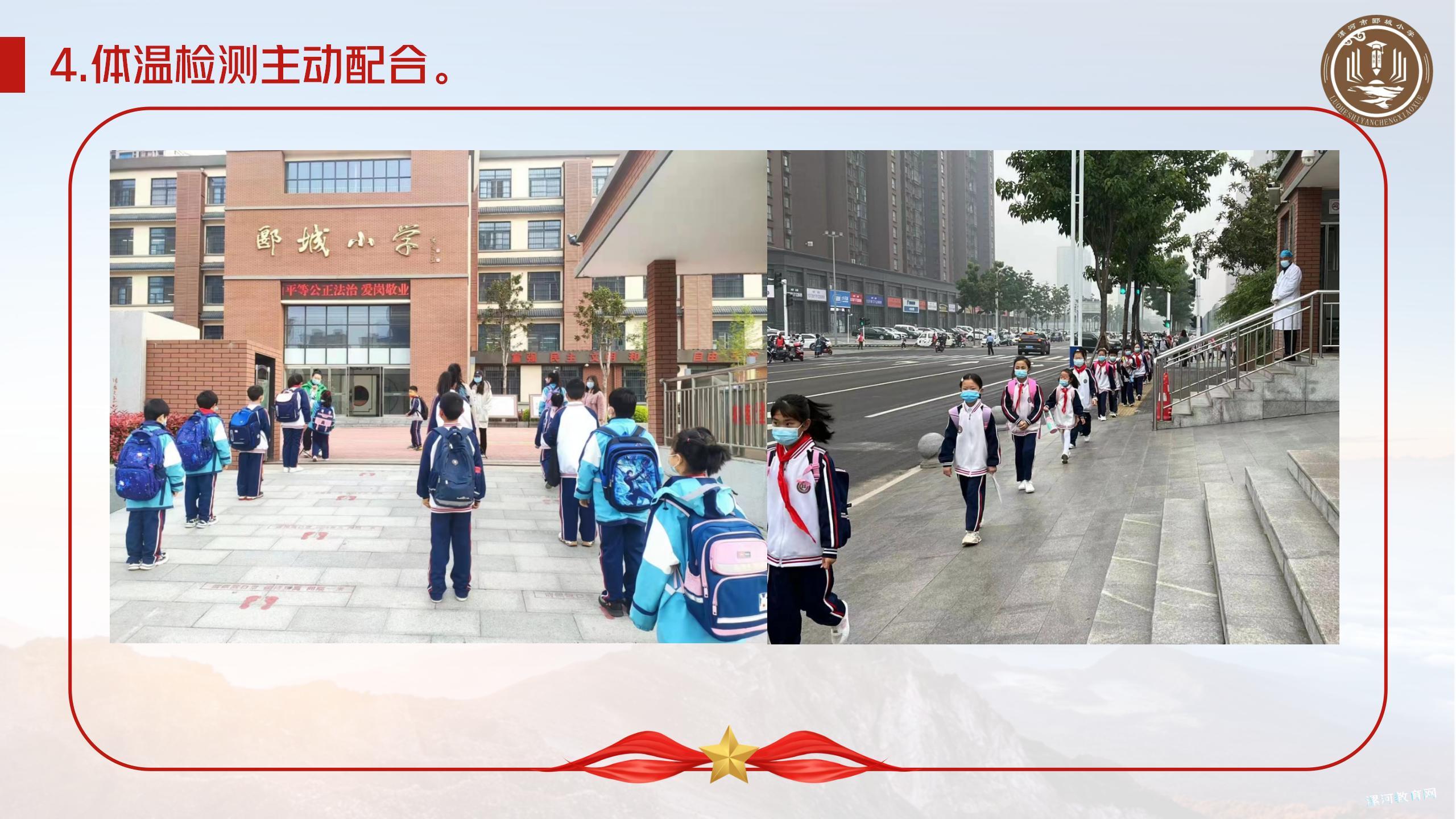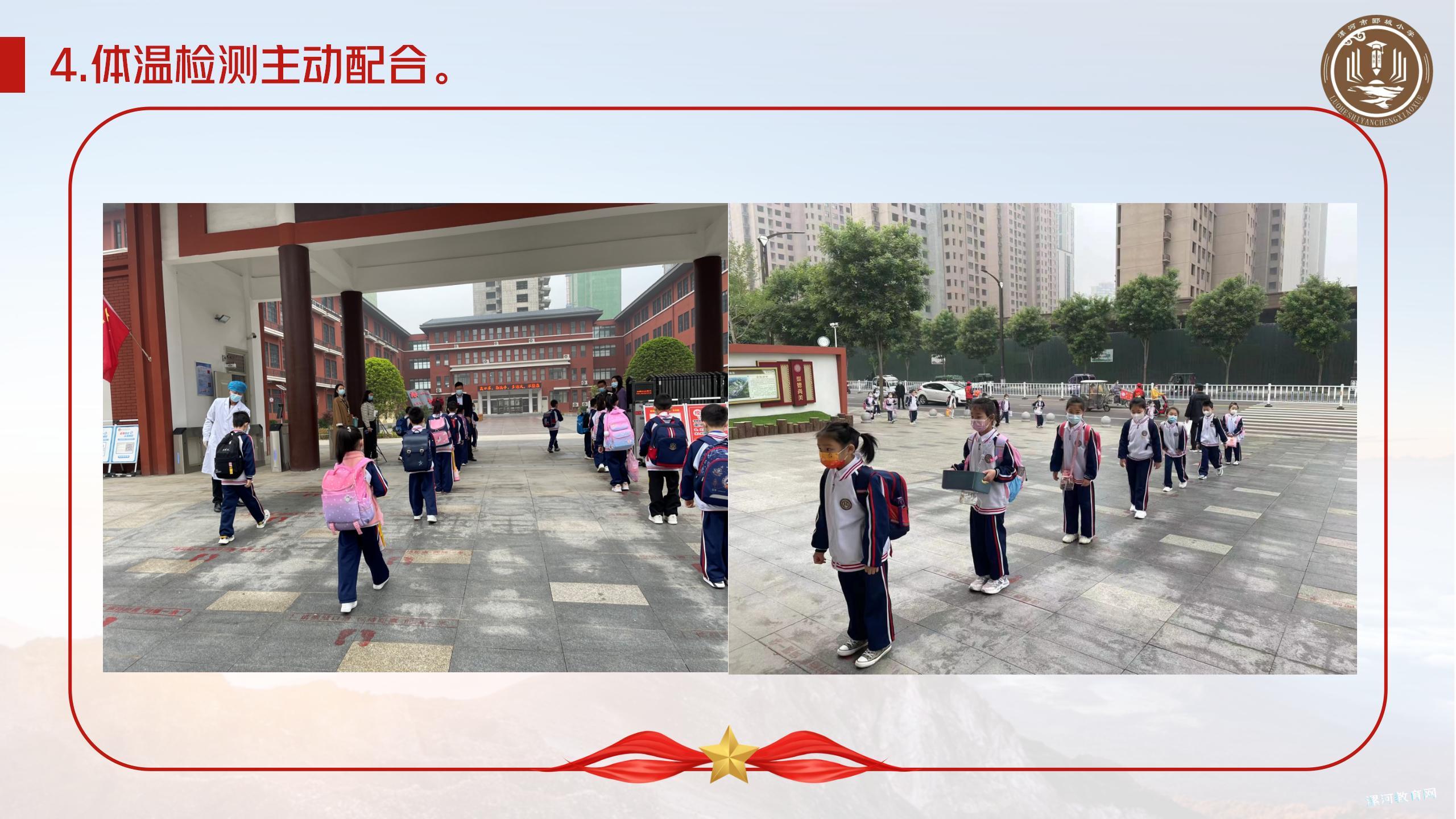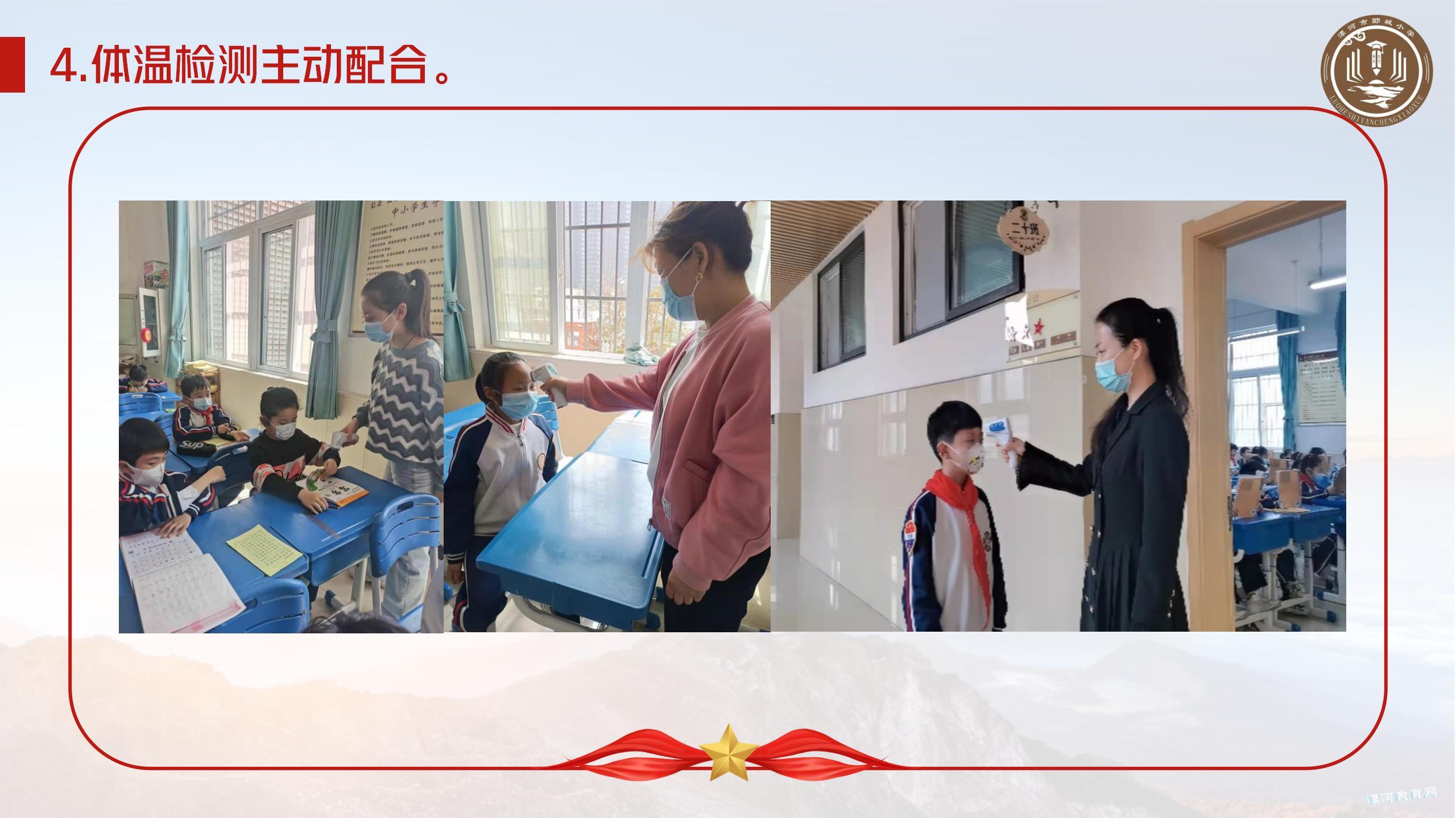 4.体温检测主动配合。按照疫情防控要求主动做好自己和家庭成员的健康监测,服从学校进行体温检测管理。坚持每天上学前、进校时、进班前、午餐后、放学前配合测量体温,确保身体健康。如有不适,及时告知家长和老师,并服从管理。