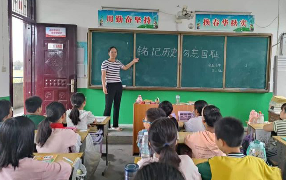 在当天的各年级周一班会时间,学校组织各班级对学生进行九一八历史事件回顾宣讲,并借此时机对学生进行爱国主义教育。