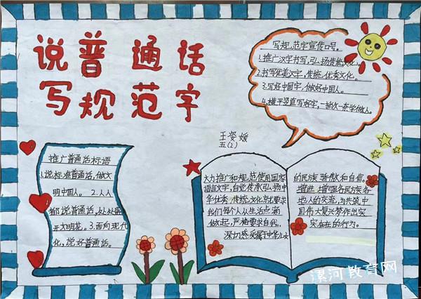 开展“推广普通话,书写规范字”手抄报比赛和黑板报创作活动。同学们踊跃参加,积极创作,给校园营造了推普学普的浓厚氛围。