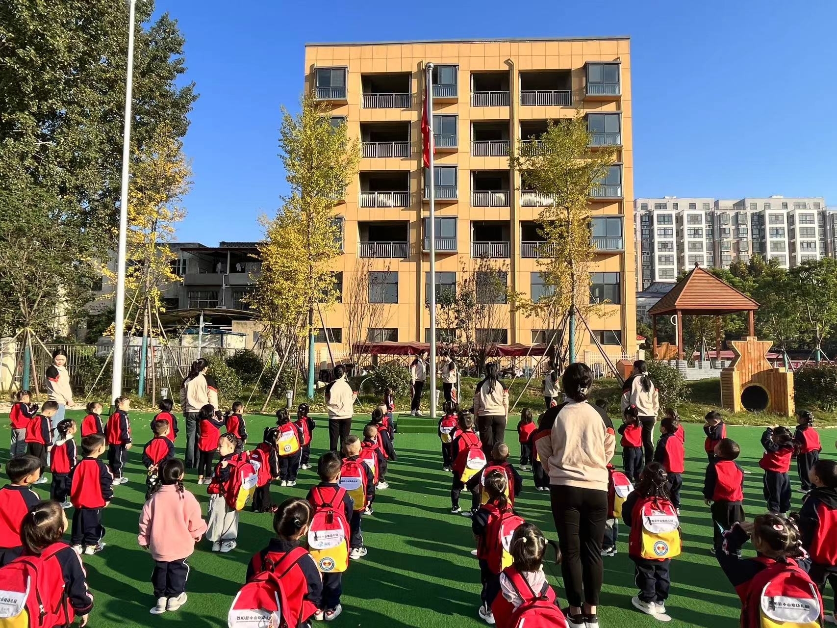 2023年10月16日。在这静谧而清新的早晨,漯河市舞阳县中山路幼儿园的老师和小朋友们站在旗杆下,举行庄严的升旗仪式。