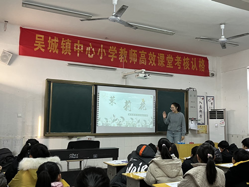 精彩课堂。第一节是由吴城镇中心小学丁思源老师带来的《茉莉花》,孩子们在老师的带领下,仿佛置身于芬芳美丽的茉莉花前,嗅到了茉莉花清新淡雅的香气。紧接着,由二实小张瑞靖老师带来《阿里里》,轻松活泼的氛围让孩子们迅速喜欢上这位充满活力的老师,孩子们也很快融入到音乐课堂当中去。最后,由三实小朱梦捷老师带来《田野的呼唤》,在音乐的世界里,师生仿佛越过寒冬,来到了充满生机的春天,感受大自然的美好和温暖。
