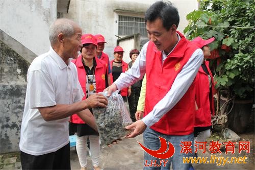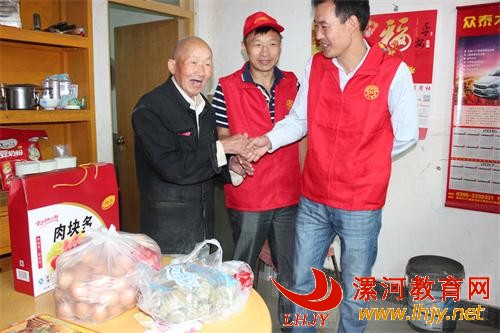 志愿者真诚的关怀和体贴入微的问候使 老人十分感动,他激动地说:“家里很久没有这么热闹了,非常感谢咱中学的老师,今年的端午节我过得特别开心。”