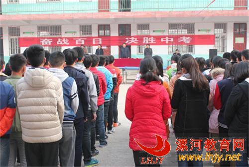 动员大会在雄壮激昂的乐曲中拉开帷幕。薛广勇副校长在大会上做了热情洋溢的动员报告,向九年级师生进行中考百日冲刺总动员,同时也对全体学生进行了人生观、价值观教育,激励广大学子刻苦学习,努力实现自己的学习目标。九年级教师代表赵文生老师简短的“真情表白”表达了教师们对莘莘学子的亲切关怀和期望,使广大学子眼眶湿润、斗志昂扬。广大学生在学生代表刘灏同学的带领下庄严宣誓和签名,把中考百日誓师大会推向高潮。
