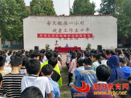 (通讯员:史许生)为进一步加强对未成年人的思想道德建设,增强青少年学生的法制观念,提高学生的自我保护能力,杜绝校园欺凌事件的发生,营造文明守纪、平安和谐的校园氛围, 5月19日上午,西城区阴阳赵镇中召开了青少年法制教育报告会,邀请源汇区人民检察院王艳敏检察官为全体师生做报告。