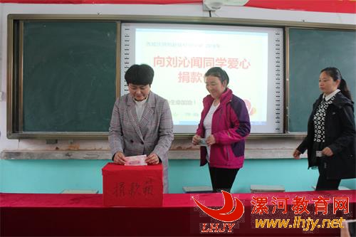 (通讯员:魏海峰)4月24日上午,西城区阴阳赵镇初级中学在多媒体教室举行爱心捐款仪式,广大师生向罹患免疫性血小板减少症的刘沁闻小朋友进行捐款,共捐款6300.83元。