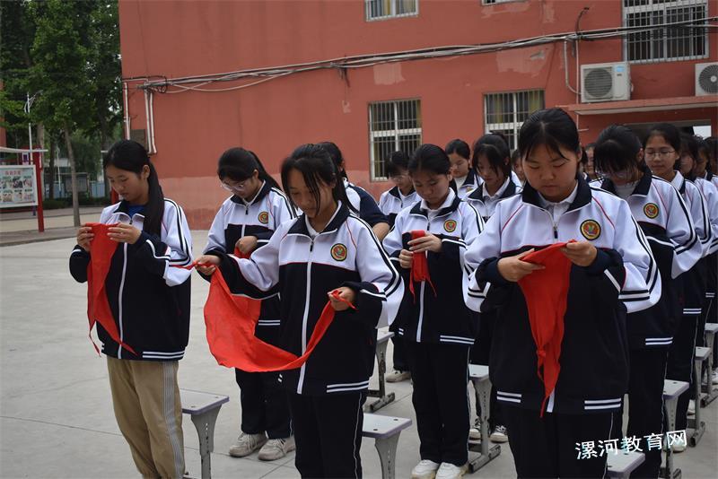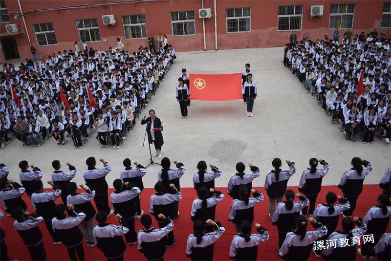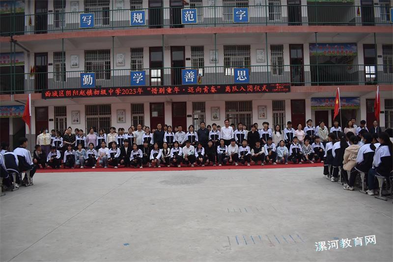 为了进一步培养广大青少年爱党、爱国和爱社会主义的情感,增强共青团员光荣感、先进性和使命感,引领广大青少年“学习二十大,永远跟党走,奋进新征程”,5月26日上午,漯河市西城区阴阳赵镇初级中学隆重举行了“惜别童年·迈向青春”离队入团仪式。