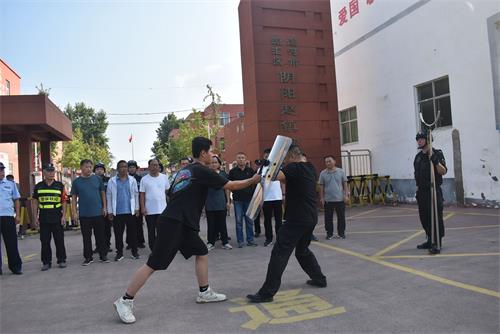 下午4点,安保人员和部分教师到达指定岗位。振兴保安公司负责人深入讲解了常见恐怖暴力袭击手段的识别方法、反恐防暴装备的正确使用以及应急处置等关键知识。重点对器械功能的使用,包括长棍、钢叉等器材的使用方法进行培训,保安人员和教师们认真听讲,积极互动,对每件器材的功能和使用技巧有了更加深入的了解。