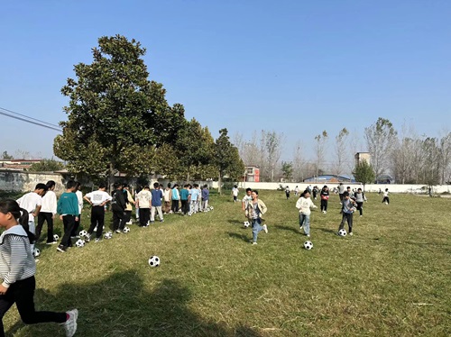 为做好足球特色课程开设,积极开展丰富多彩的校园活动,全面推进素质教育,切实增强学生体质,促进学生身心健康发展,近期,漯河市郾城区新店镇第三中心小学组织全体学生大课间在操场进行了课间足球运球训练活动。