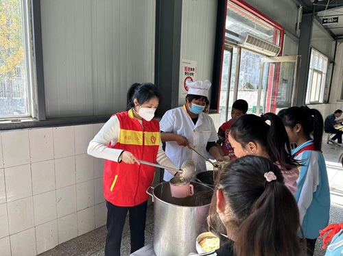 参加食堂值班志愿服务活动的党员教师们,在每天就餐时间都会穿着志愿服,赶在学生之前到达食堂岗位,在就餐时间引导用餐的同学有序排队,维持学生就餐秩序,引导学生文明就餐,并按照秩序为孩子们提供打饭服务。食堂值班志愿服务活动的开展,让学生们树立了文明就餐的意识,养成了文明就餐的习惯,同时也增强了党员教师的服务意识、奉献意识、责任意识,进一步发挥了党员同志的先锋模范作用,增强了支部的凝聚力和战斗力。