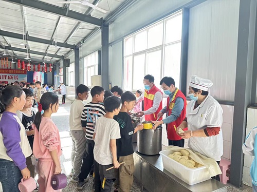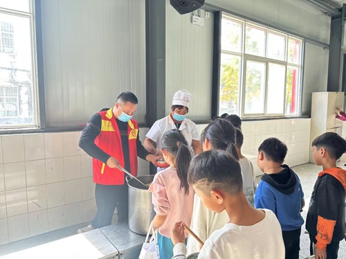 为维持食堂就餐时间学生排队秩序,培养学生文明就餐的良好习惯,发挥党员教师的先锋模范作用,漯河市郾城区新店镇第三中心小学组织起学校全体党员教师开展食堂值班志愿服务活动,为学生提供一个良好、文明的就餐环境。