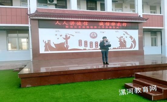为加强未成年人思想道德建设,将诚信美德建设与全环境立德树人相结合,11月27日,孟庙镇坡陈小学利用升旗仪式,开展了主题为“人人讲诚信 诚信伴我行”的教育活动。
