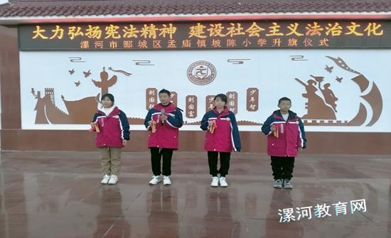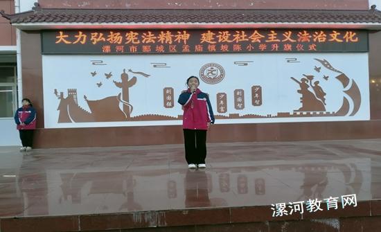 为了增强宪法意识、弘扬宪法精神、加强宪法实施、全面推进依法治国,让学生从小学习宪法、尊崇宪法,积极营造和谐校园氛围,12月4日孟庙镇坡陈小学开展国家宪法日—宪法晨读活动。