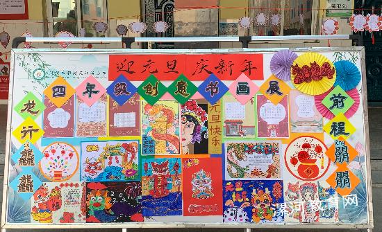 一至六年级分不同主题布置迎元旦书画展版面,其中包含书法、绘画、泥塑、剪纸、创意手工等优秀作品。孩子们用稚嫩的小手,书写出一张张书法作品、描绘出一幅幅充满童真童趣、色彩艳丽的绘画作品,充分展示了孩子们扎实的基本功和丰富的想象力、创造力;精心制作出一个个充满年味儿的手工作品,表达对新年的祝福和期望。
