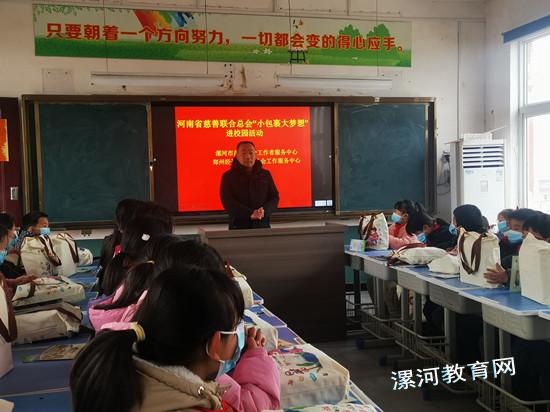 在孩子们热烈的掌声中,郾城区民政局副局长熊笃志发表了致辞。他指出,留守儿童的健康成长是全社会关心的热点问题,事关每个家庭的幸福,更事关国家的未来。河南省慈善联合总会积极发起此次爱心捐赠活动,努力凝聚爱心,希望通过发放卫生包、护理学习包,同时配备护萌成长计划教育课程,为需要帮助的孩子改善学习生活条件,呵护其健康成长成才。他还勉励孩子们要珍惜学习时光,发愤图强,树立正确的价值观、世界观和人生观,爱党、爱国、爱家乡。
