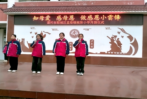 孟平花老师在国旗下演讲时说道:低年级的孩子们给妈妈唱首歌,或给妈妈讲个故事,或给妈妈洗脚,或做一些力所能及的家务事来诠释对妈妈的爱。