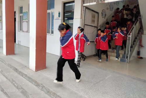 上午9时30分,伴随着一阵急促的警报声“起火了!各班老师组织学生疏散!”,全体老师各司其职,迅速到达指定岗位,各班主任和老师迅速组织学生疏散,负责各楼层学生疏散的老师也在第一时间到达所在楼层拐角处指挥疏散学生。