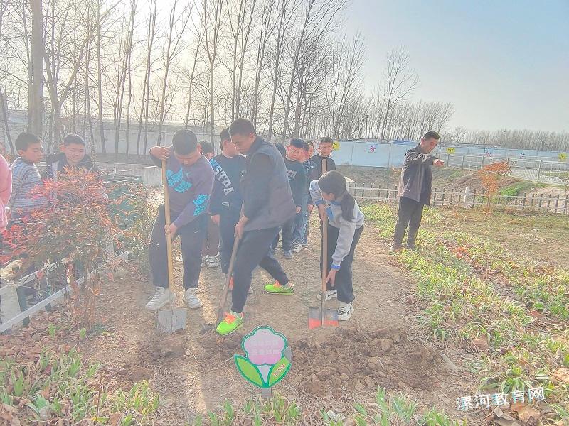 在植树节当天,各班班主任带领本班学生来到学校的劳动实践基地,迎着春风积极参加到美化义务植树活动中。同学们热情高涨,平常连锄头都没有摸过的同学,此刻却有板有眼地当起了“园丁” 。同学们不怕劳累,不怕泥土,用手中的力量铲土、栽种、用心浇灌。共同种下一棵棵充满未来希望的树苗。种下期盼,静待花开。想象着小树苗在阳光下茁壮成长,他们无比欢喜!