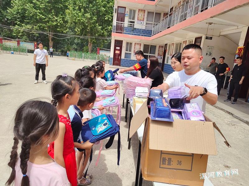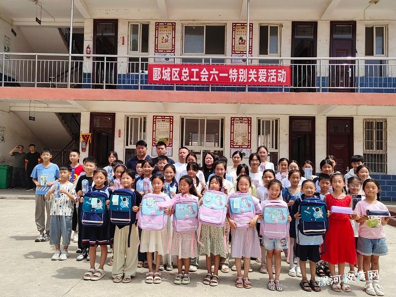 5月31日上午,漯河市郾城区总工会女工部部长刘文静一行来到裴城镇第三中心小学,为孩子们带来了书包、笔袋、钢笔等六一儿童节礼物,看望受资助的5个困难家庭学生和35位留守儿童。