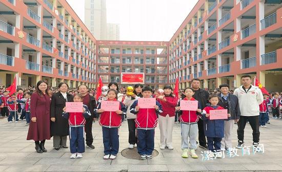 丁艳玲副校长宣读了体育节比赛成绩和团体、个人项目获奖名单。校领导分别为获奖班级和个人代表颁奖并合影留念。
