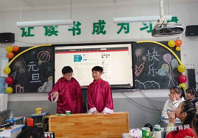 在班主任们的认真组织下,同学们还精心准备了形式多样的文艺节目。趣味十足的游戏《贪吃蛇》、优美动听的歌唱《和你一样》、令人捧腹大笑的小品《应聘》、精彩绝伦的器乐演奏《贺新年》、火红的科目三等等。活动中,同学们热情高涨,各显神通,他们在欢乐的舞台上尽情释放自我,尽显童年的欢乐,表达着对元旦佳节的祝福与期待,同时也展示出受小学子热情活泼、积极向上的精神风貌。