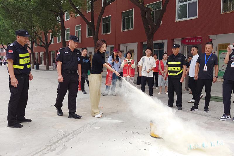 副校长刘潇针对此次演练进行总结,肯定了演练过程中孩子们冷静迅速的表现,也进一步指出了本次演练过程中出现的问题,强调防患于未然的重要性。随后,安保队长针对灭火器的种类、适用范围以及操作步骤,为师生进行详细的讲解。现场演示了手提式干粉灭火器的使用方法,即“拔销、握管、压把、对准火源根部喷射”。师生们认真聆听,积极参与,通过亲身体验,熟悉了灭火器的使用流程。